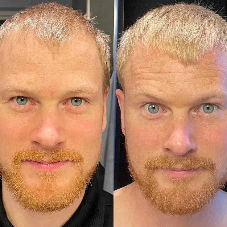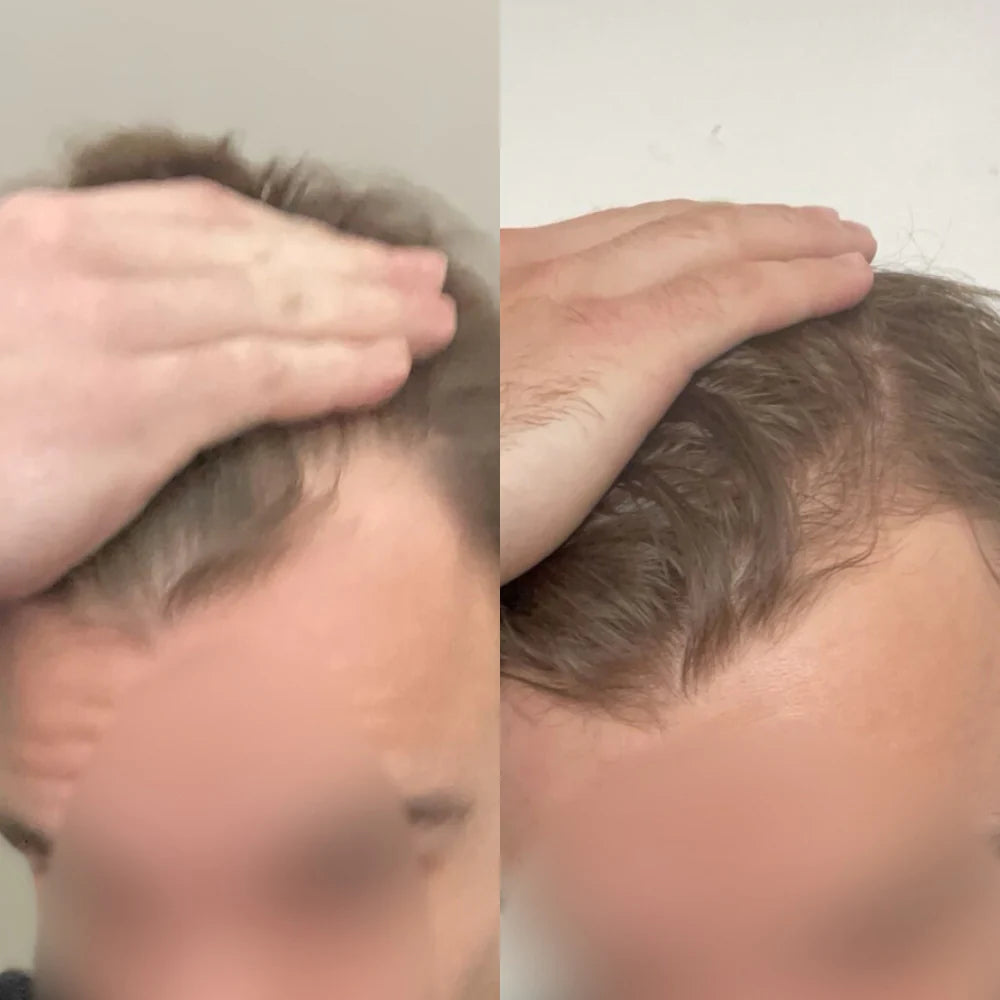 Androgenetic alopecia (male pattern baldness) responds to rosemary's DHT-blocking properties. Temples start filling in. Crown thickens. Proven results on the areas men lose first.